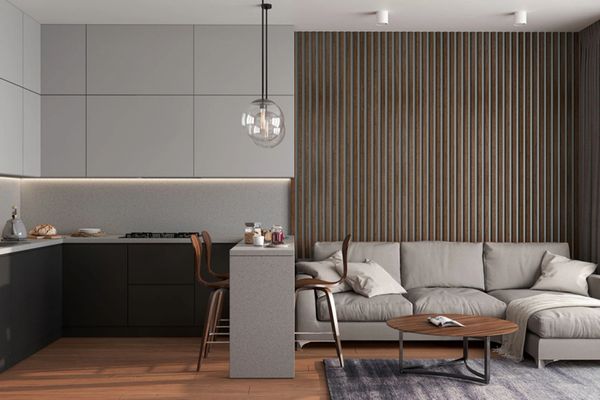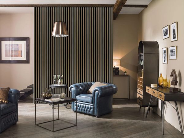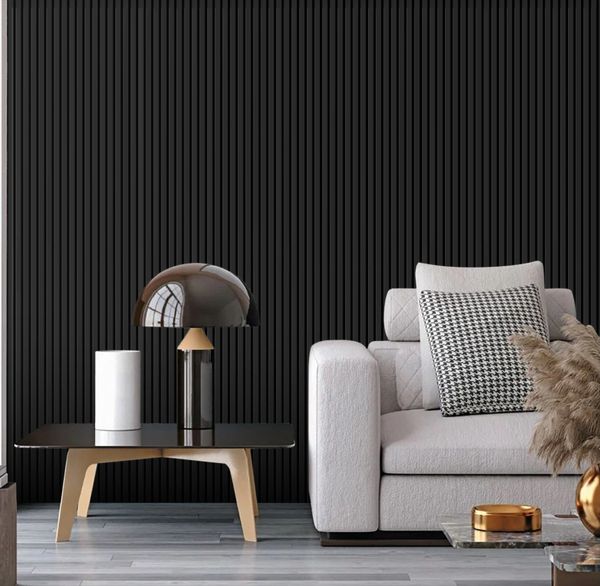 Each panel features elegant wood slats on a felt acoustic backing. The combination gives you: